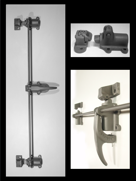 Standard features include two latching points, single pull release handle, fixed strikes, corrosion-resistant high strength malleable iron castings, 1 ½” precision-machined steel bolts with special flat tongue. Panic push pad release (P3) on stop side. Standard finish is U.S. Prime, other finishes available. Standard weight 59 lbs minimum. Fasteners are socket head cap screws.
